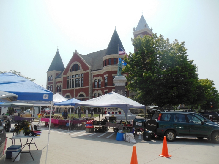 We visited the scenic Green County courthouse on the square in Monroe, where the Saturday farmers market was in session. Very nice, but not quite like the farmers market in Madison.