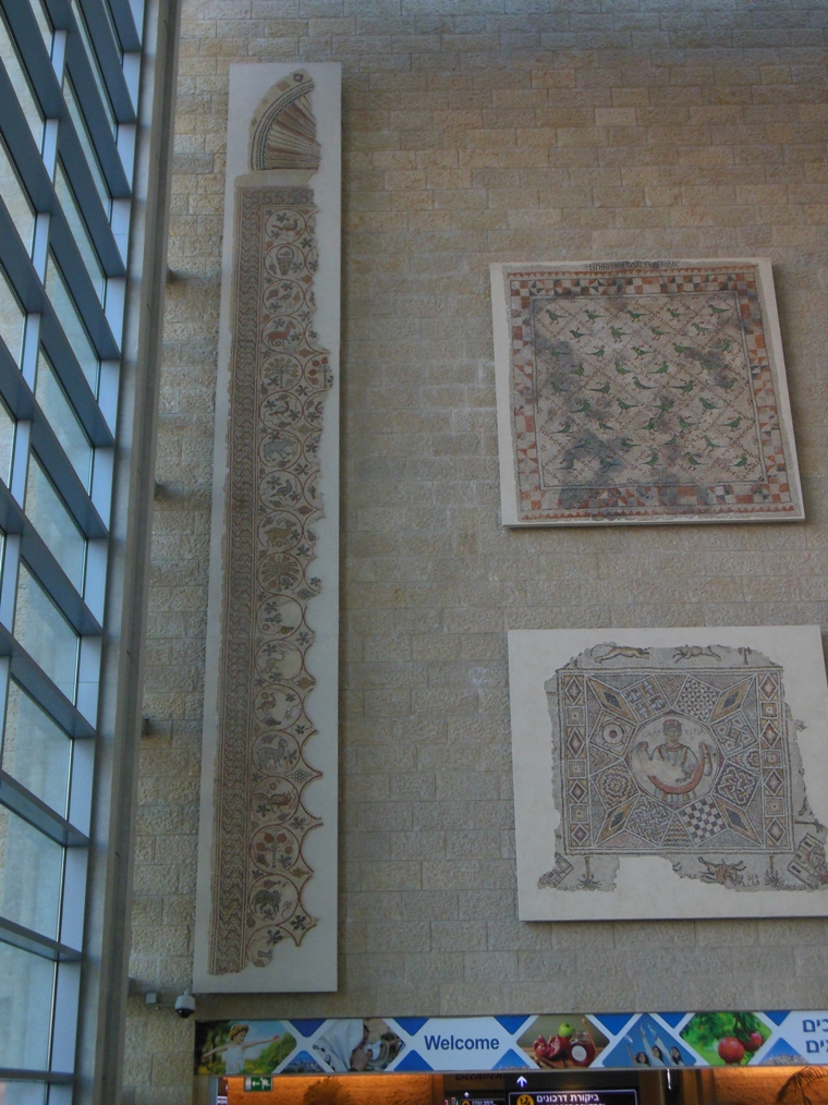 The pilot circled around Ben Gurion airport and landed, and soon we were greeted by a beautiful archaeologically themed welcome display.
