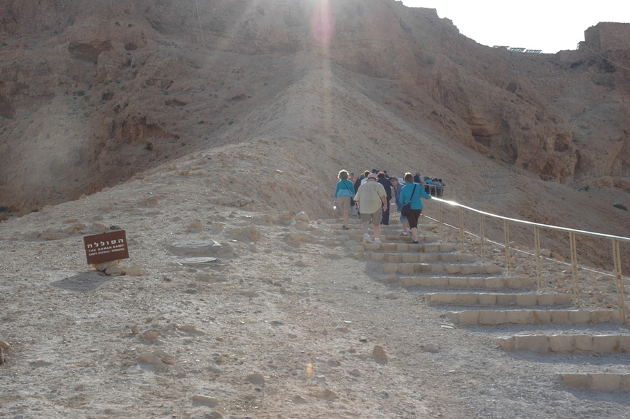 Just five miles down the road we found ourselves at Masada, Herod’s fortress palace overlooking the Dead Sea. This was my first time entering from the west, up the side of the Roman ramp constructed in 73 AD by Roman soldiers and Jewish slaves in an attempt to dislodge the 900 Jewish zealots who had taken over the fortress.