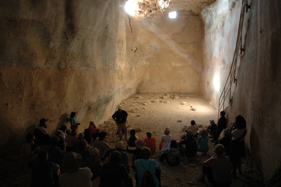 To have a palace on top of a mountain in the desert, there needs to be lots of cisterns, to hold the water from the rare desert rainstorms. Our guide Shlomo began to tell us the story of Masada in a theater-sized cistern.
