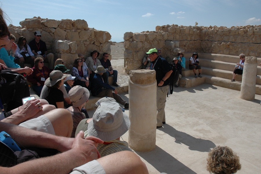 In the Masada synagogue, Shlomo concluded the story of the zealots of 73 AD who took their own lives just before the Roman soldiers breached the fortress. In the vicinity of this synagogue, archaeologists found eleven ostraca (potsherds), each with a name written on it. It’s believed these were the lots cast by the men to decide who would kill others and then themselves.