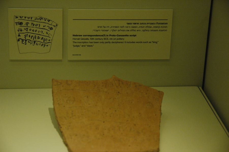 One of the oldest examples of Hebrew writing, the Khirbet Qeiyafa ostracon (piece of pottery with writing on it), discovered just a few years ago in 3,000-year old ruins overlooking the Elah Valley.