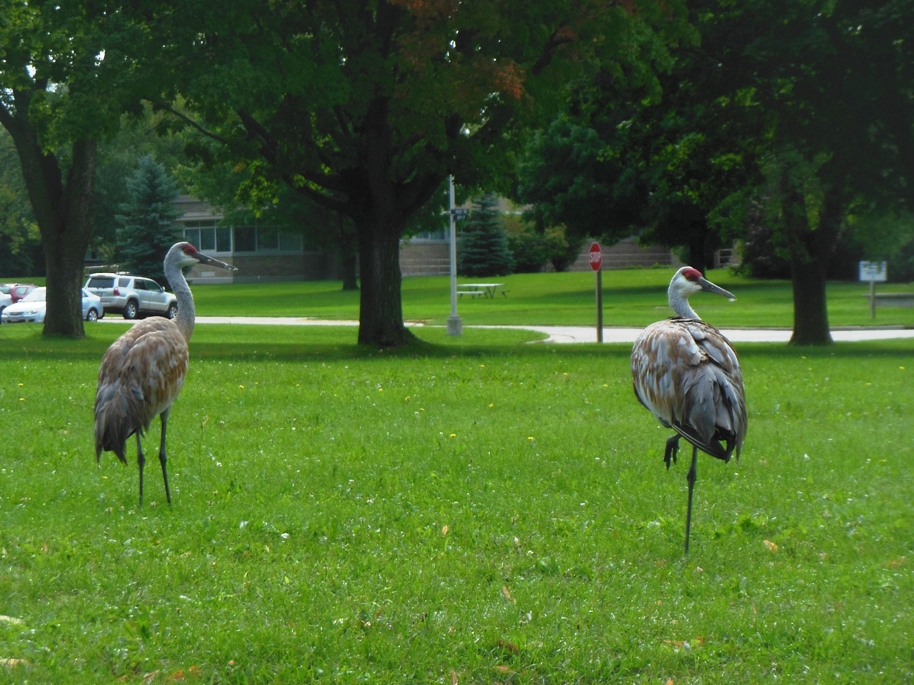 Saw another pair of cranes at Governor Nelson park, then this third pair at the Central Wisconsin Center.