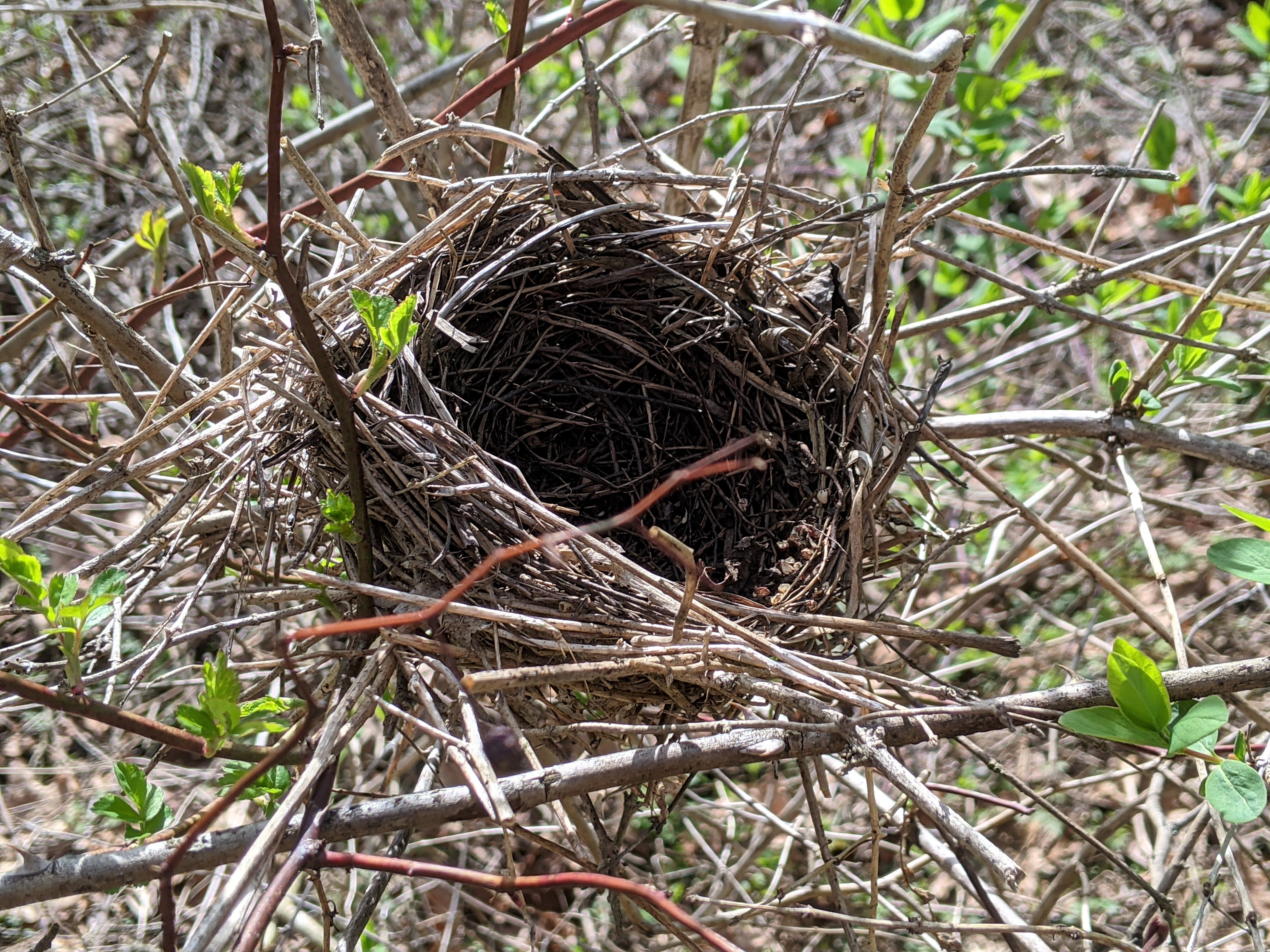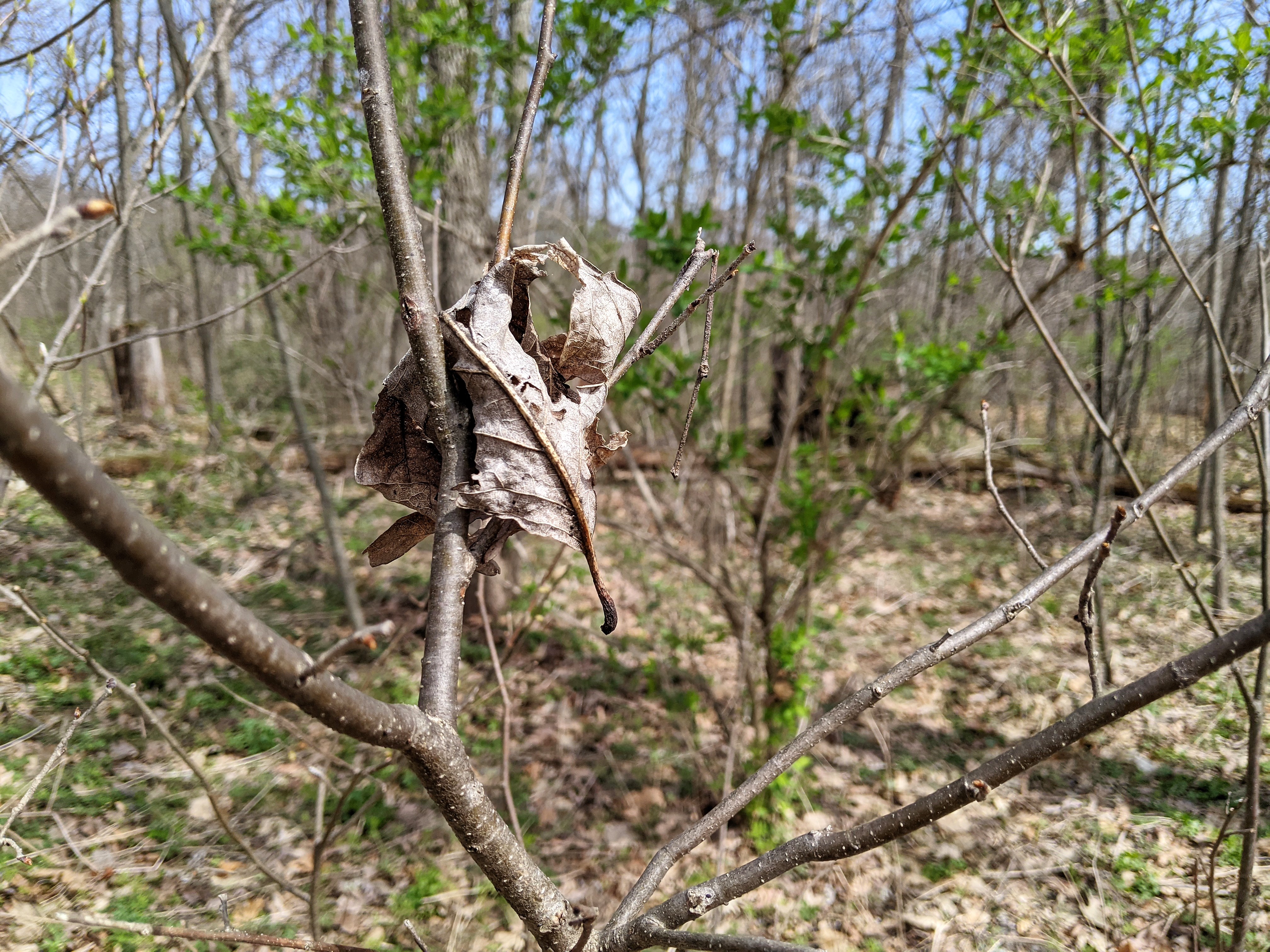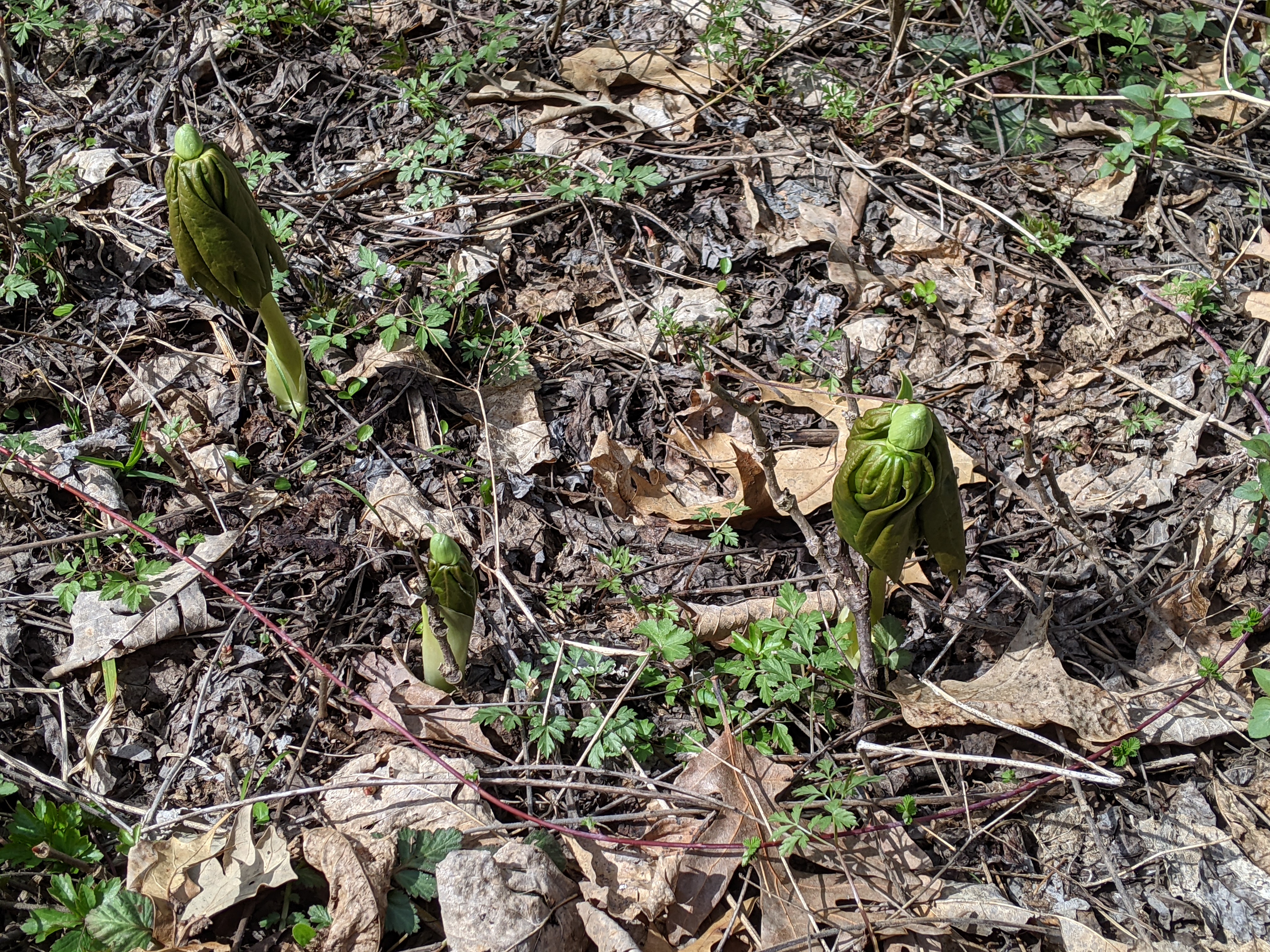 The woods are filled with trees, bushes, and other flora springing into vitality.