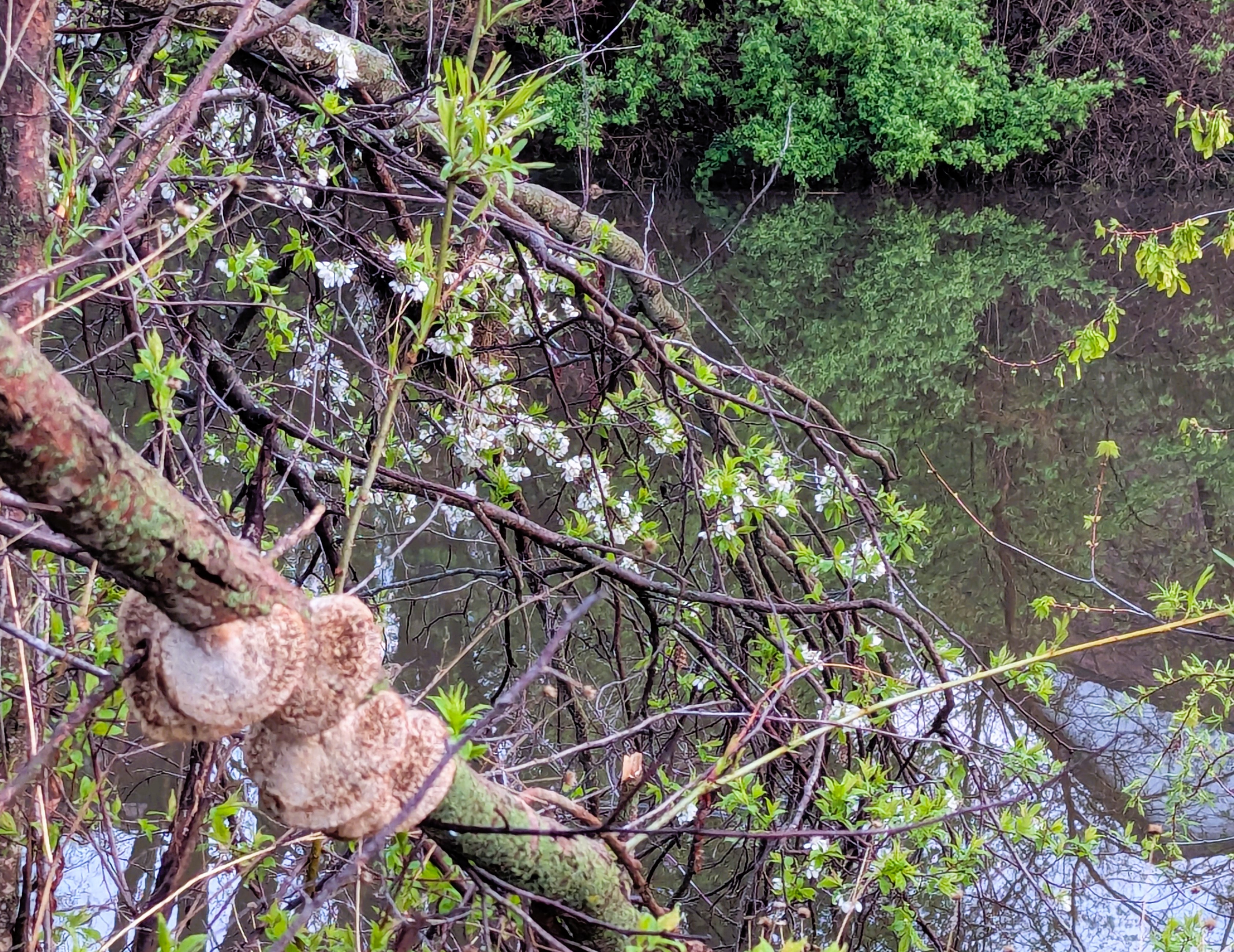 I realized when I woke up this morning that plans to work in the garden today were not going to be realized, due to the 5½ inches of rain we’d seen in our rain gauge the last 2 days. So I decided to to take a hike…to the arboretum.