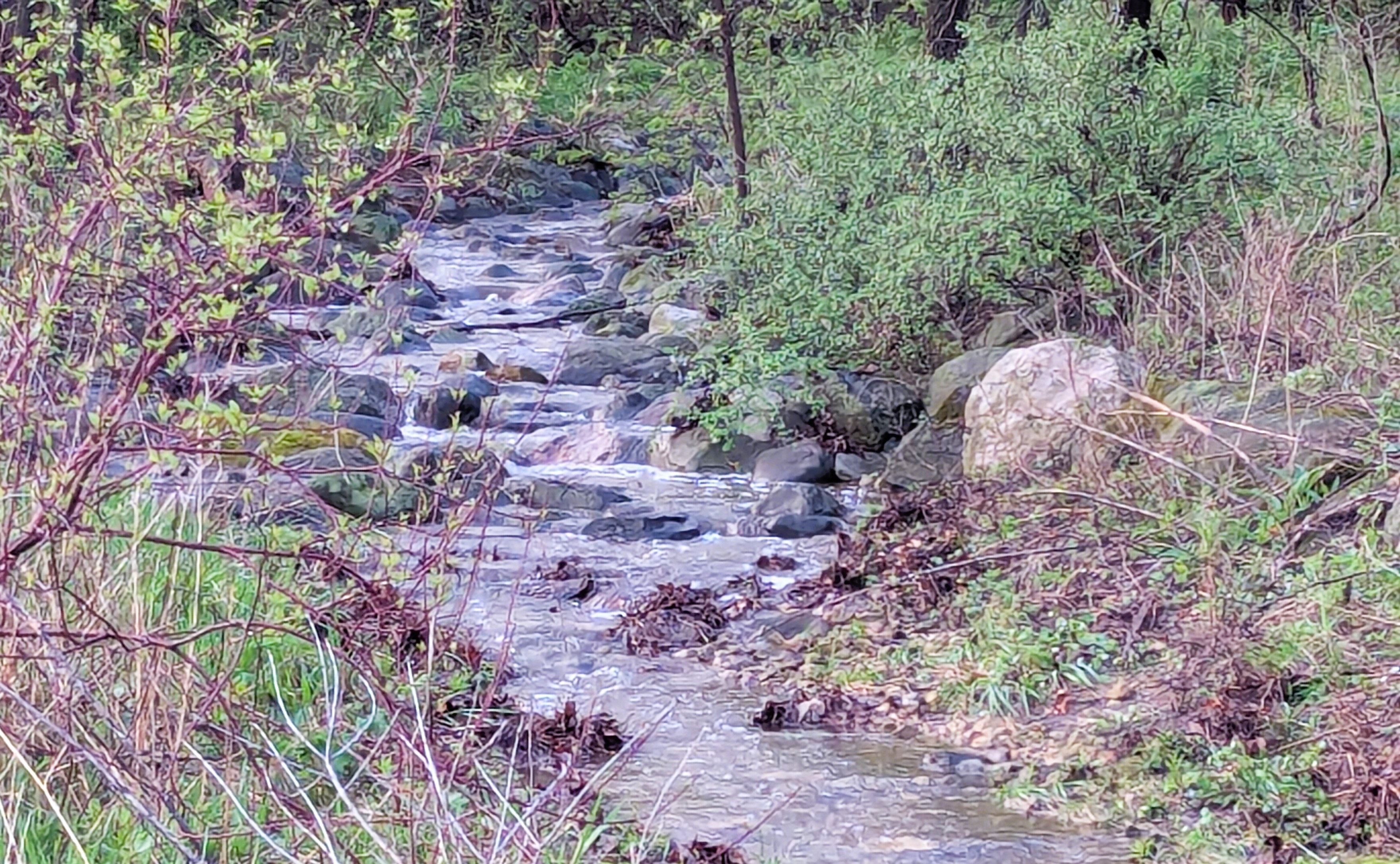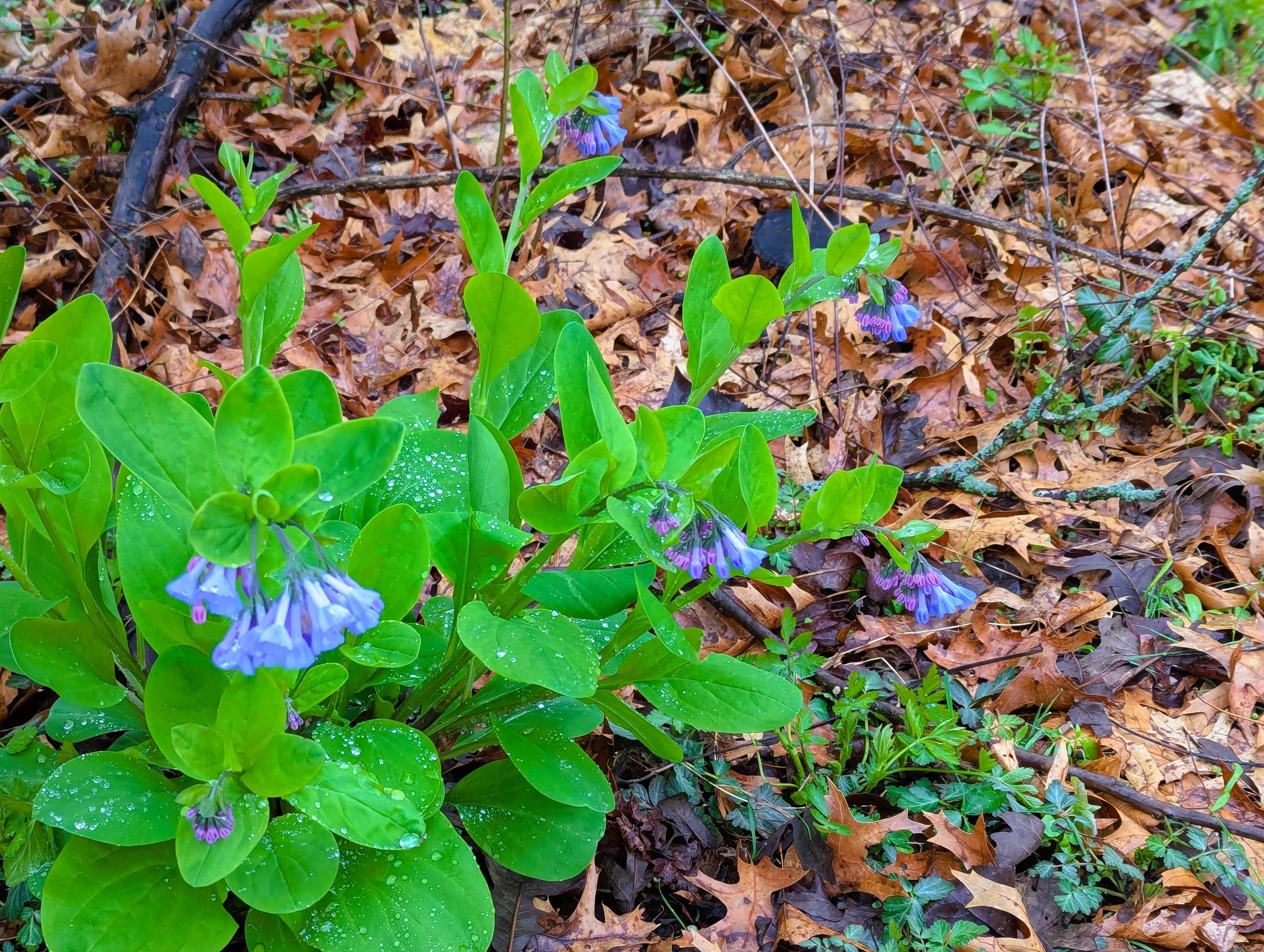I stepped off the path to frame a photo of a burbling brook, filled with yesterday’s rain.