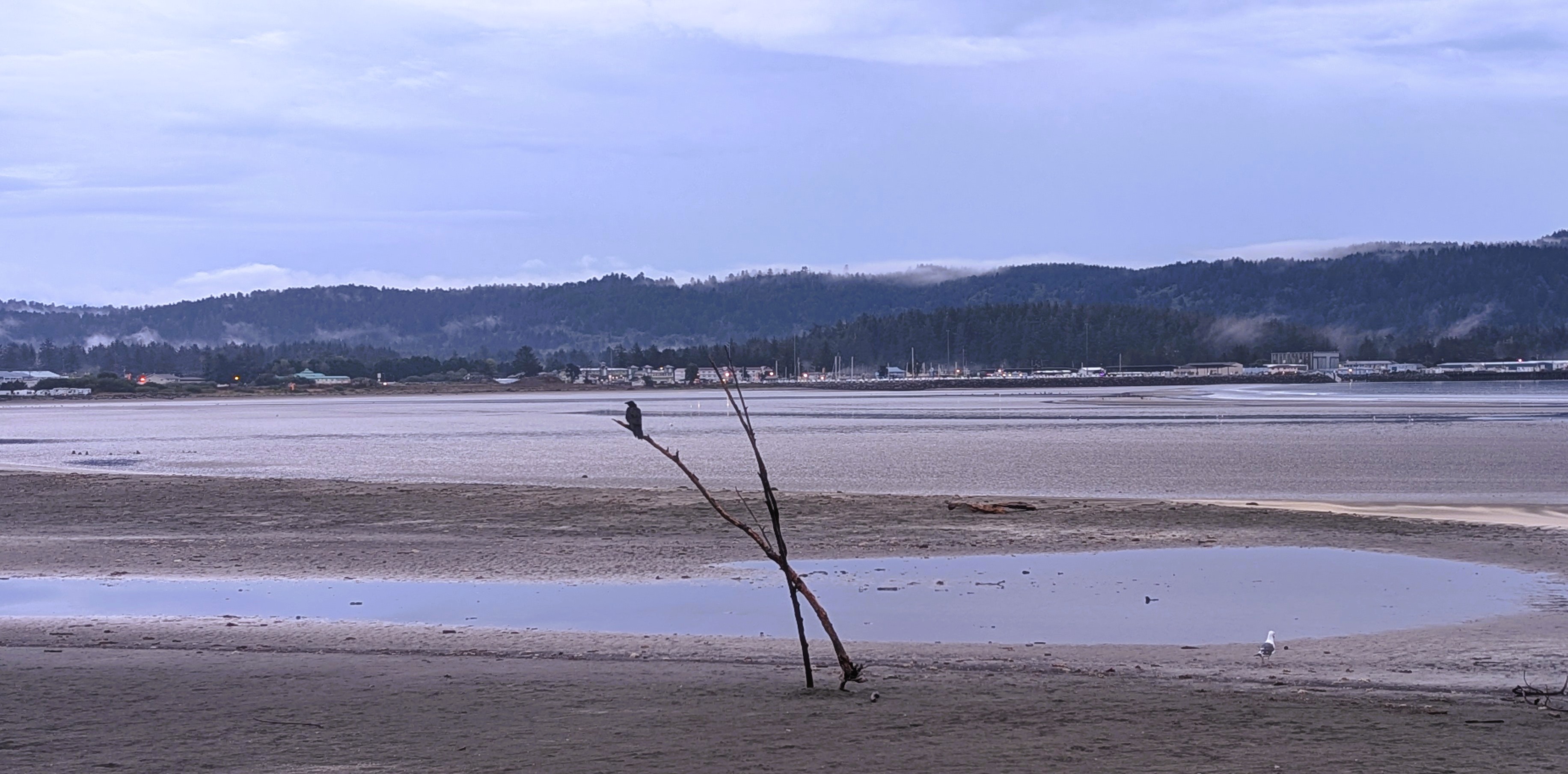 Crow and Gull wait for the fog to break and the sun to come out.