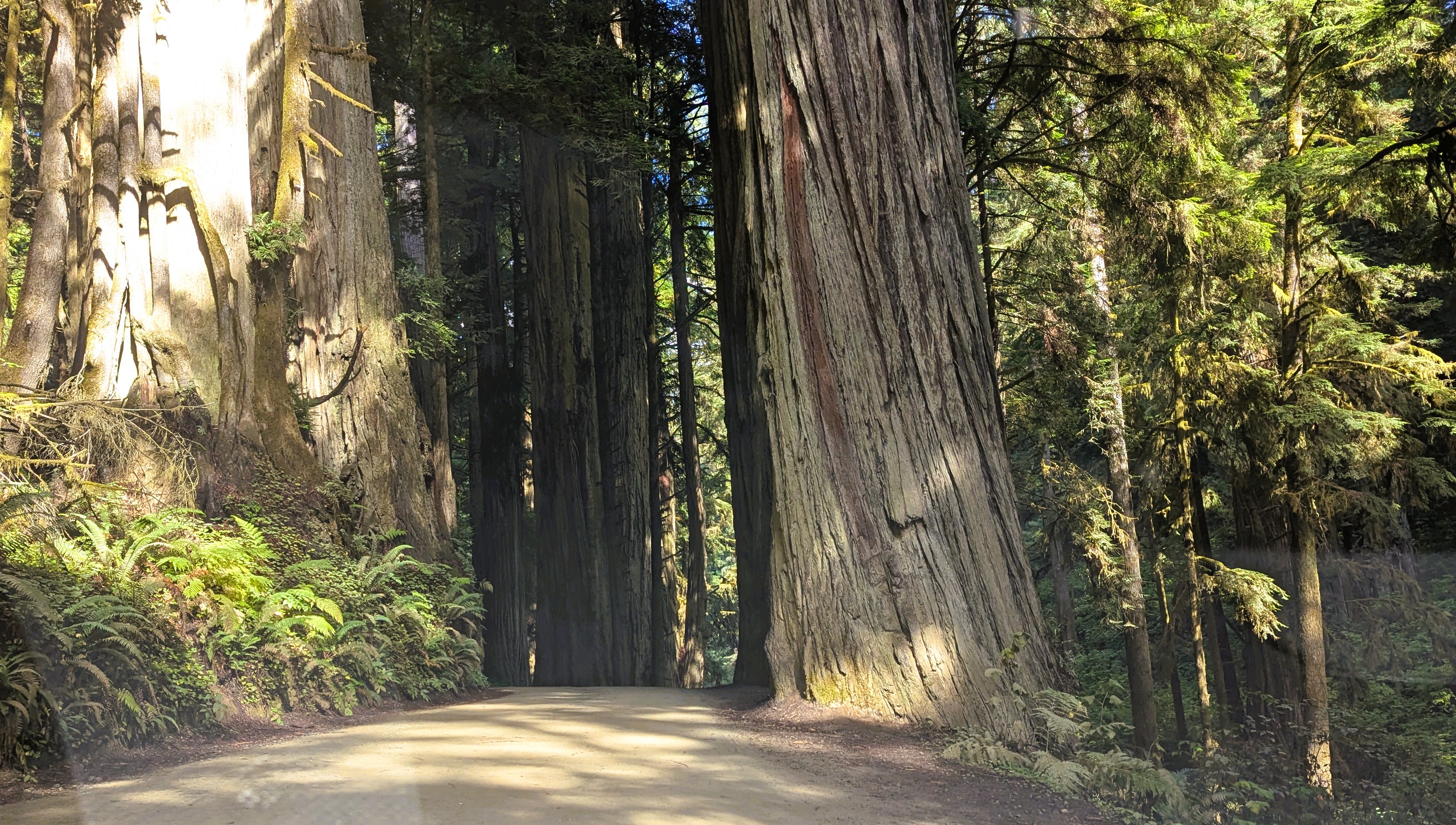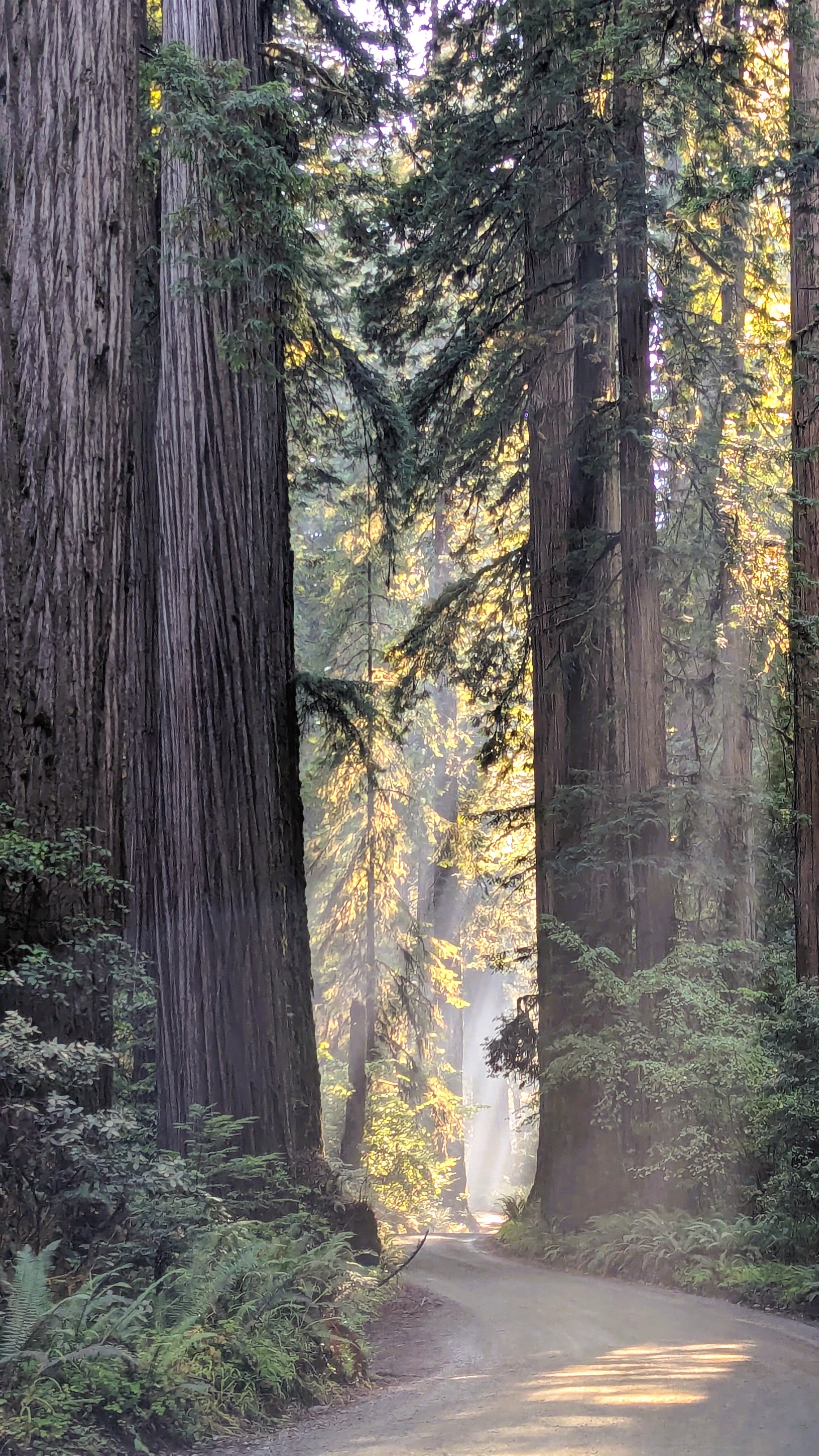 The Redwood Trees are crowding the road its entire length.